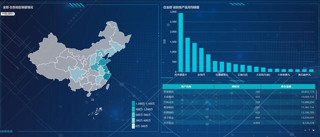 5、假設此時我是業(yè)務人員,想要看到各地區(qū)醫(yī)藥客戶的銷量、周轉(zhuǎn)等情況?!獙僮鳎涸谇岸送献D表和表格,建立可視化分析